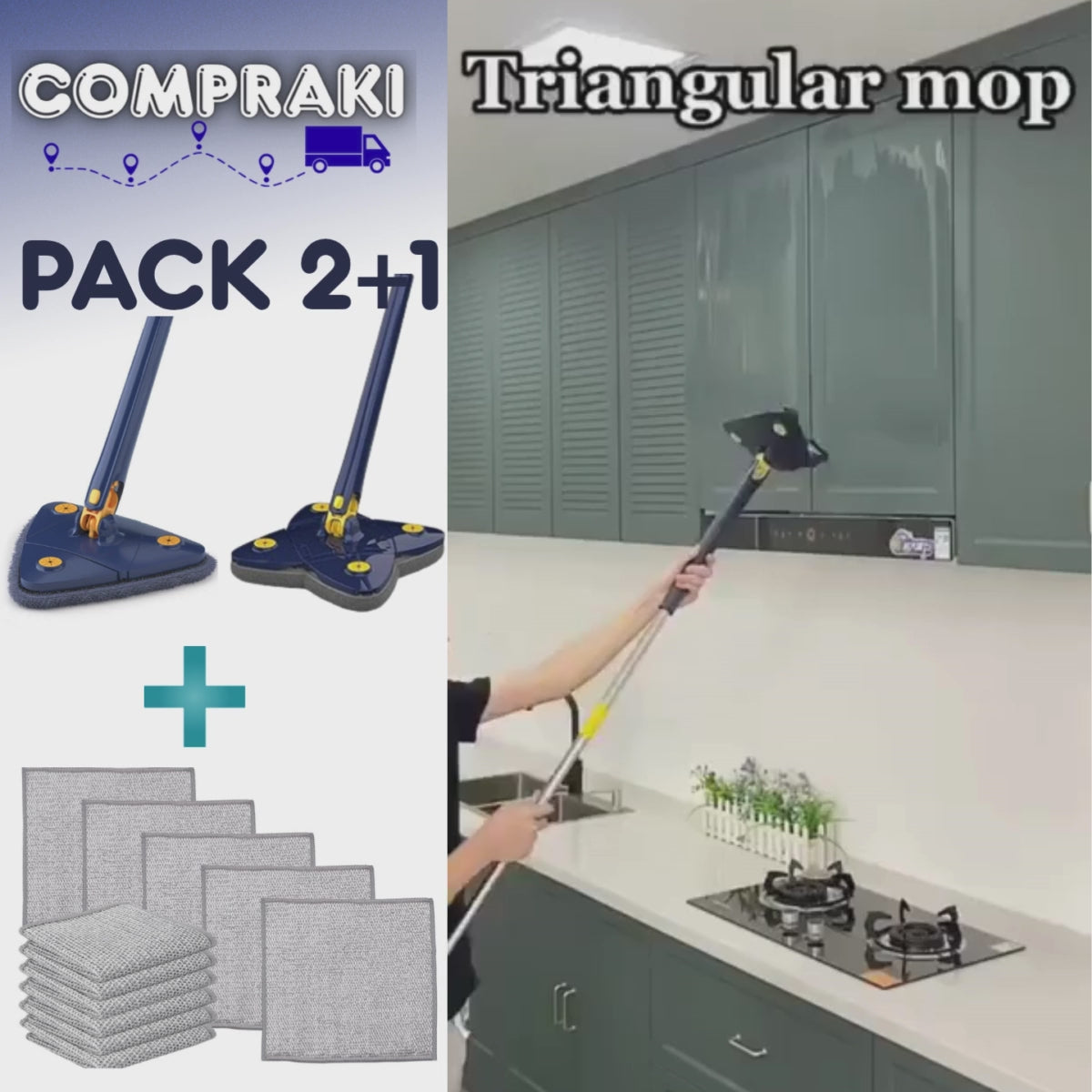 Pack 2+1 - Fregona telescópica + kit de paños de limpieza